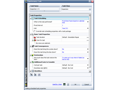 Figure 4: Maintenance Task Window for a Scheduled Task