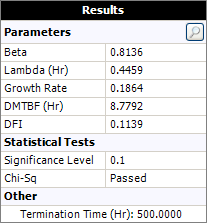 After analyzing the data, the results summary shows that the demonstrated failure intensity (DFI) value at the end of the 28 hours of testing is 4.4947.