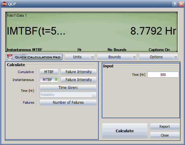 Figure 4: Quick calculation showing the DFI (i.e., failure intensity at the end of the test).