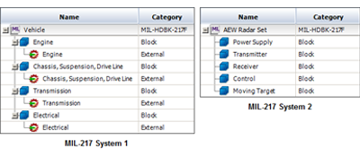 The following pictures show the system configurations for Systems 1 and 2 in the sample MIL-217 project.