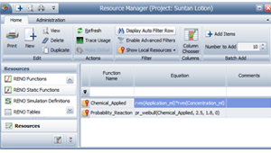 Here, Chemical_Applied is equal to the amount of lotion applied multiplied by the concentration of chemical X in the lotion. The equation uses the RENO internal function called “rvm” to return a random value based on the Application_ml model and the Concentration_ml model.