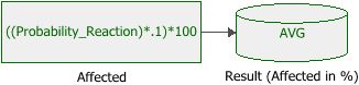 Step 1: Use a standard block to calculate the percentage of the population affected, based on the probability of a reaction. This is calculated by multiplying the value of the probability by the percentage of the population that is susceptible (0.1), and then by 100 to convert the figure into a percentage.
