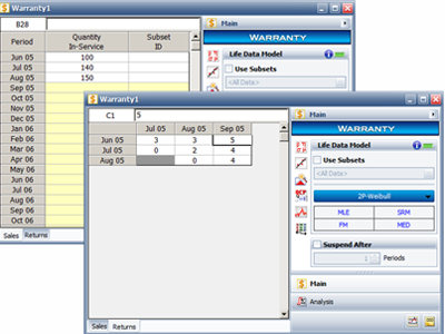 In June, 100 units are sold and in July, three are returned. This gives 3 failures at one month for the June shipment. Likewise, 3 failures occur in August and 5 occur in September for this shipment. Consequently, at the end of the three-month analysis period, there are a total of 11 failures for the 100 units shipped in June. This means that 89 units are presumably still operating and can be considered suspensions at three months.