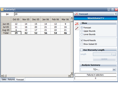 A company keeps track of its shipments and warranty returns on a month-by-month basis. Using the warranty analysis folio, determine the parameters for a 2-parameter Weibull distribution and predict the number of products from each of the three shipment periods that will be returned under warranty in October.